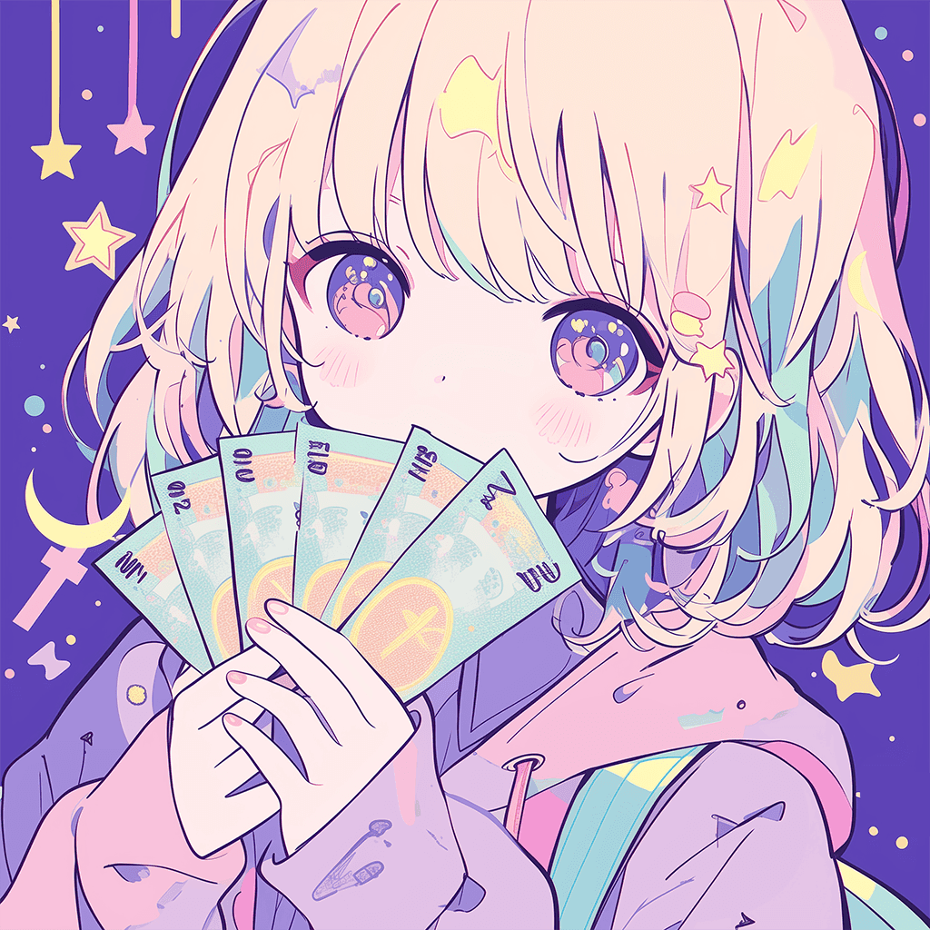 094 – 大金を手にして喜ぶ女の子